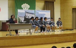 児童集会で、5年生の発表がありました。発表の内容は、「水俣に学ぶ肥後っ子教室」で学習したことでした。