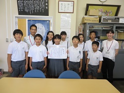 まず、「熊本県学校版環境ISOコンクール優秀賞」を本校が受賞したので、その取組をリードしてくれているロストアーティクルズ環境委員会が全校児童を代表して賞状を受け取りました。