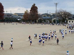 朝から全校児童でグラウンドを走り、記録をつけています。