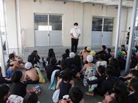 準備運動、水慣れ、泳力調査、コースに分かれて練習