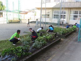 1年生が生活科の学習でシャボン玉遊びをしました。
