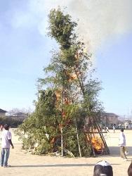 今日は小学校のグラウンドでどんどやがありました。