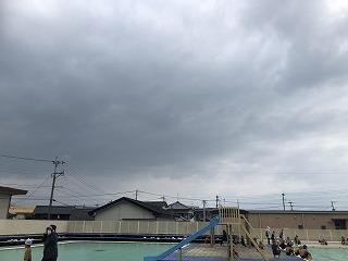 給食時間に強い雷雨が降り、午後の水泳が危ぶまれました。