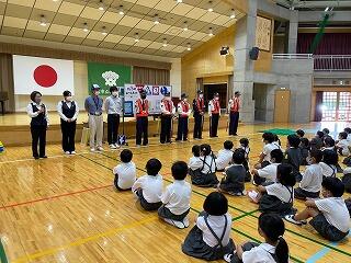 自転車の点検の方法や交通ルール等、体育館で学習をしました。