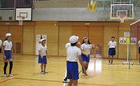 球技はソフトバレーボールで、自分たちでポジションを考えて、みんなで協力しながらプレーしていました。