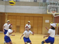 球技はソフトバレーボールで、自分たちでポジションを考えて、みんなで協力しながらプレーしていました。