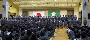 5年生は交互に立ち上がり、全校児童へ呼びかけていきました。発表を聞いていた児童にとって環境について考える機会になっただけでなく、発表した5年生にとっても、学習したことを振り返るよい機会になりました。
