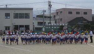 子どもたちは、自分の元気な姿を見せようと、頑張って走っていました。