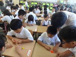 今日は朝から6年生が低学年の子どもたちのところに来て、
