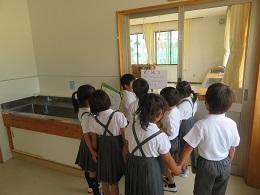 今日は1年生が学校探検をしました。