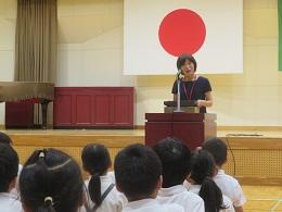 1年生から6年生まで、各学年の代表児童6人がみんなの前で