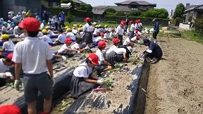 JAの青壮年部の方々に畝づくりやマルチ張りなどもご協力いただきました。