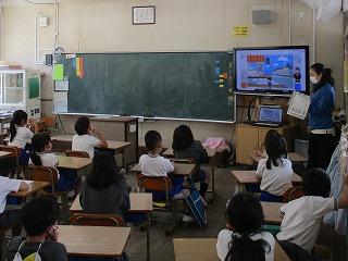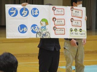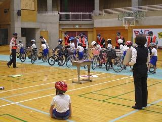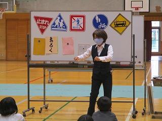 今日は低学年の交通教室がありました。まずは映像で道路の危険について学びました。
