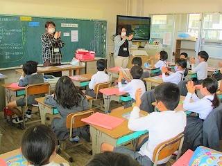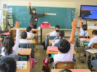 4年生の外国語活動ではいろいろな国の挨拶を学習していました。