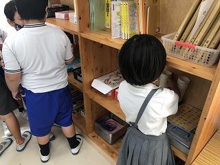 掃除は縦割り掃除に取り組んでいます。低学年の教室でパワフルに頑張るお兄さん、お姉さんの姿が見られました。