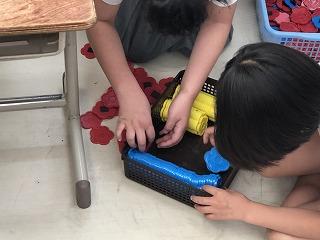 今日の学校の様子です。色の塗り方を学習しているクラスがありました。
