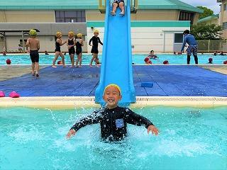 今日は6月の最終日です。青空の下でプールを楽しむ子ども達の姿が見られました。