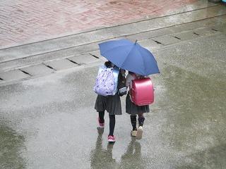 午後は雨となり、傘を持ってきていない子ども達は協力して帰っていました。