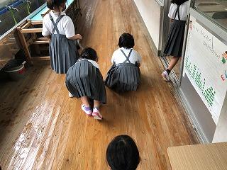 今日は床を一生懸命ぞうきんで磨く姿が見られました。