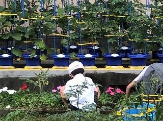 二年生が毎日水やりをして育てた野菜が大きくなっています。