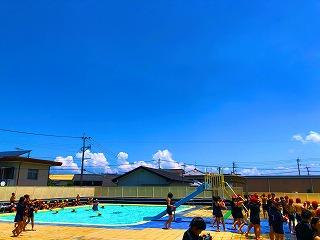 今日はとても晴天に恵まれています。プールの自由時間はとても楽しそうでした。