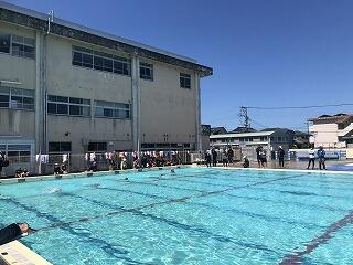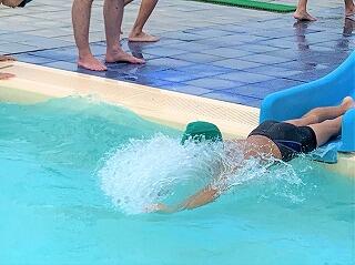 晴天に恵まれた今日は、水泳教室が開かれました。