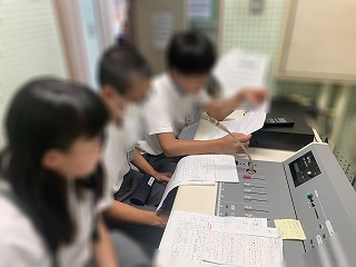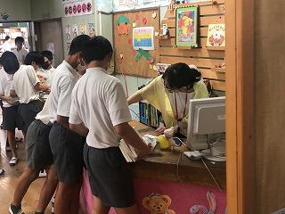 夏休み前の図書室です。いつもより多く借りることができるので大賑わいです。