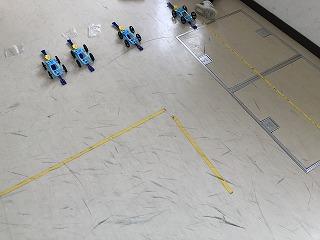 今日は理科の実験をしている様子が見られました。輪ゴムの本数を変えて車の走る距離を調べています。