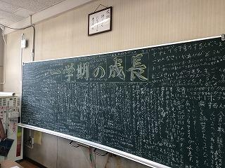 1学期の成長を話し合った後の黒板です。たくさんの成長したところが書かれています。