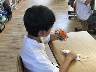 運動会の練習の後は楽しみにしていたミカン果汁の時間です。