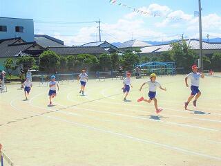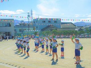運動会練習に頑張っている子供たち。毎日汗だくで頑張っています。