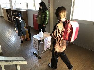 子供たちは教室だけで無く、廊下でも手指の消毒をする様子が見られました。