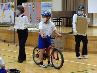 自転車の点検の方法や交通ルール等、体育館で学習をしました。
