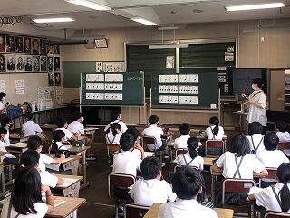 新型コロナウイルスの影響で思いっきり歌うことのできない音楽の授業ではリズム作りの学習をしています。
