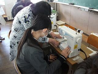 今日は6年生の家庭科、ミシンの実習です。地域の皆さんにご協力いただきました。