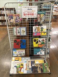 図書室では2月22日の猫の日に向けて「猫の本特集」がされていました。