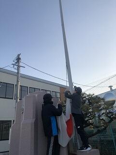朝から毎日、国旗掲揚をする委員会の姿が見られました。