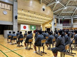 信用の「信」、真実の「真」、親切、親しみの「新」、自分を伸ばす「伸」、真心の「心」、自分から進んでの「進」、新しいことへの挑戦の「新」の7つのシンを大切にしてほしいという内容でした。