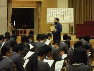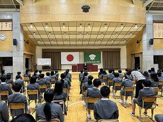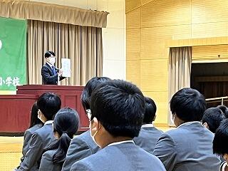 信用の「信」、真実の「真」、親切、親しみの「新」、自分を伸ばす「伸」、真心の「心」、自分から進んでの「進」、新しいことへの挑戦の「新」の7つのシンを大切にしてほしいという内容でした。