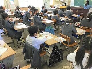 朝から避難方法を学んで、緊急地震速報に合わせて避難をしました。