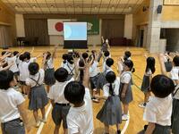 まず、「どんじゃんけん」で楽しく仲良くするためのやくそく「勝っても自慢しません」「負けてもくよくよしません」を聞きました。