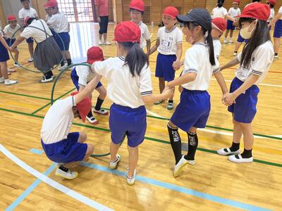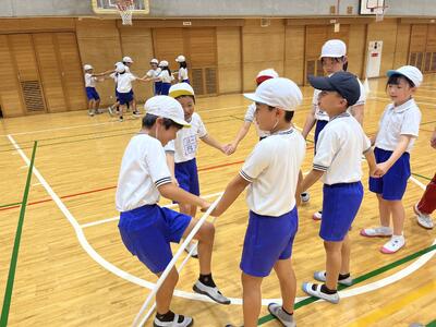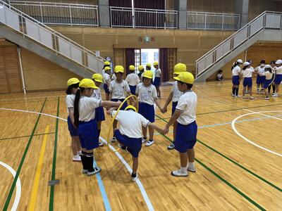 最後は、クラスみんなで大きな輪を作って、どのクラスが一番早く繰り抜けられるか競争もしました。