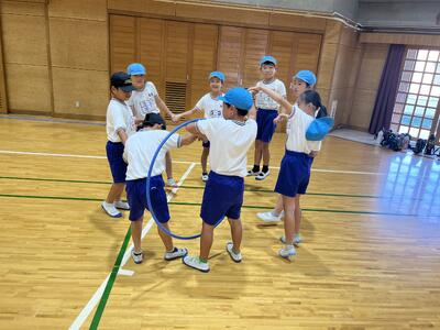 素早くフラフープをくぐるためには。友達との協力が大切です!
