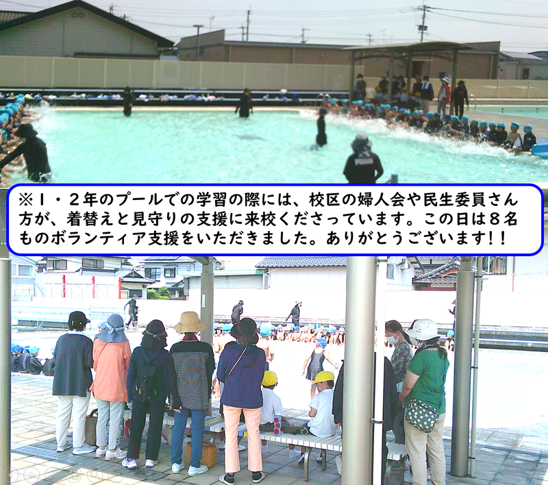 令和7年度 プール学習における婦人会や民生委員さん方の支援(1・2年) 6/30(月)