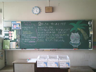 遂に2学期が始まりました。各教室の黒板には、担任からのメッセージが書かれていました。