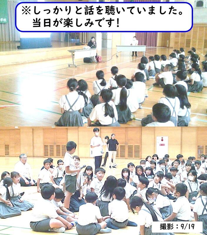 八代支援学校小学部の先生方が来校され、八代支援学校や子供たちの話をしてくださいました。