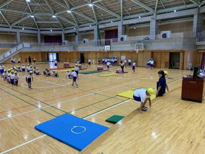 令和7年度 体育の跳び箱・マット運動の一場面(4年生) 9/30(火)