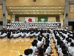 長崎の修学旅行で学んだことを全校のみんなに伝えました。