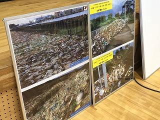 たくさんのゴミの投棄の写真や鳥や亀などの生物の事を学習しました。