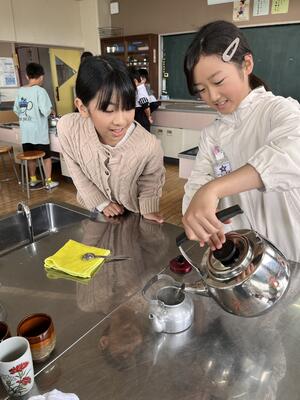 今回はお茶の淹れ方に挑戦し、自分たちで火加減を調節したり、分量を正確に量ったりと、とても真剣に取り組んでました。